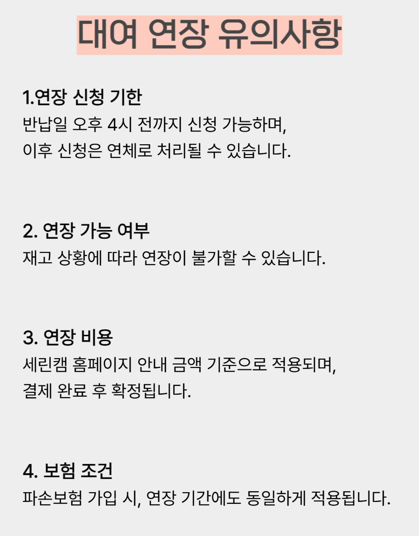 대여한 물품의 대여 기간을 더 길게 연장할 수 있는 서비스입니다.